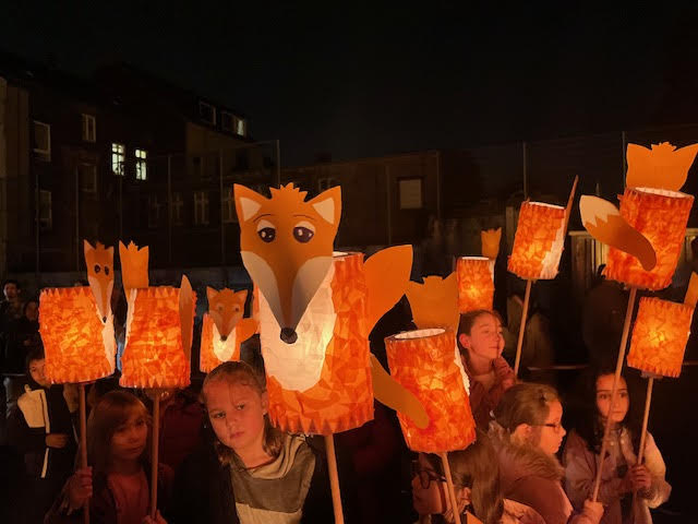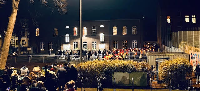 Mit ihren schönen und aufwendig selbstgebastelten Laternen ging es für die Kinder unserer Klassen wieder straffen Schrittes durch die Straßen unseres Viertels. Vorneweg ritt Martin auf seinem Ross und natürlich gab es auch Musik und Gesang. Nach dem Umzug fanden sich alle zur Martinsgeschichte am Martinsfeuer ein und ließen den Abend anschließend bei Grillwürstchen, Kaffee und Tee ausklingen.